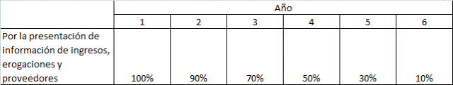 El impuesto que se determine se podrá disminuir conforme a los porcentajes y de acuerdo al número de años que tengan tributando en el régimen previsto en esta Sección, conforme a la siguiente: